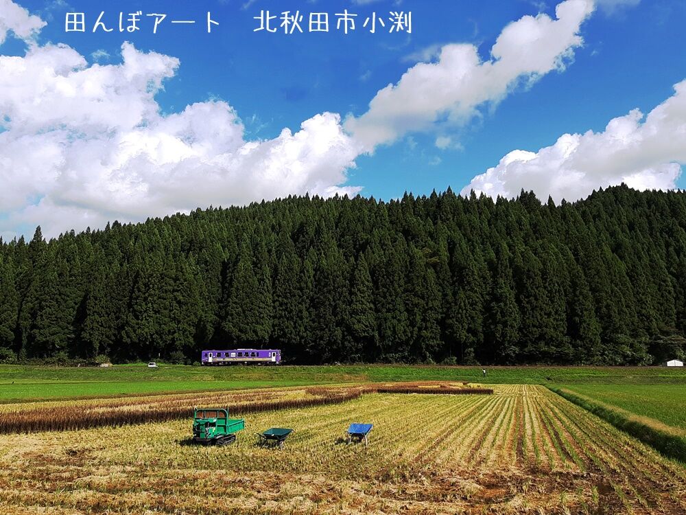 さて!内陸線からご覧頂ける田んぼアートの今を少し紹介させて頂きます。東北地方も梅雨入りしたようですが、いま阿仁合は曇りです。午後から雨予報ですが雨が降っていても列車の中からなら濡れずにご覧頂けます。また阿仁河川公園にも行ってまいりました!